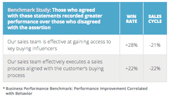 As the saying goes, companies don’t buy, people buy. Failing to gain access to key influencers in a deal is definitely one of the main reasons why deals are lost. The first step is to identify who the real influencers are; and then consider things from their perspective. Sellers who are effective in doing this have a 28 percent greater Win Rate and a 21 percent shorter Sales Cycle. Combined, a 68 percent increase in sales performance is achievable.